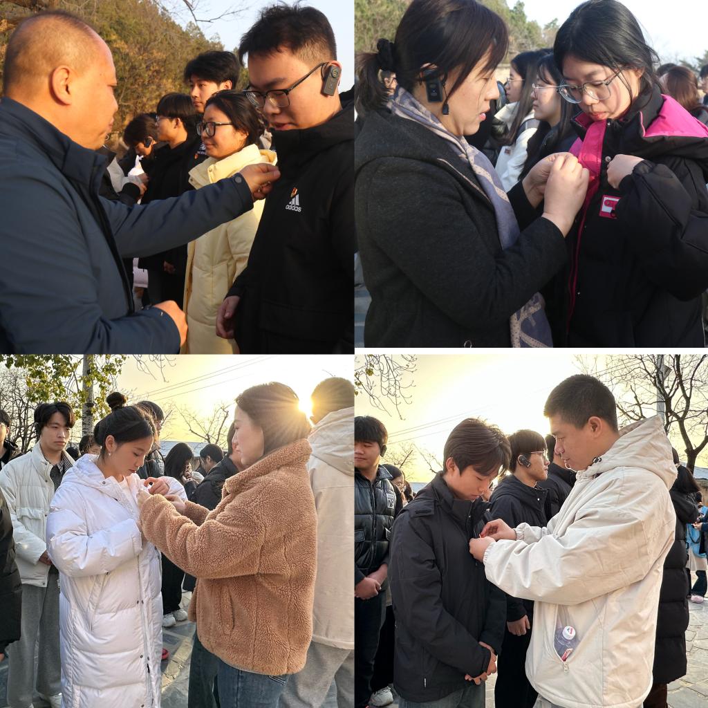 在七届二中全会会址前,入党宣誓仪式庄重举行。王剑彪书记讲授“传承西柏坡精神”微党课,寄语新党员珍惜荣誉,牢记对党的郑重承诺;积极工作,用实际行动践行初心使命;对标先进,用先锋模范作用诠释党员身份。李丽副书记带领预备党员面向党旗庄严宣誓。随后,学院领导与支部书记共同为新党员佩戴党员党徽,标志着他们正式加入党组织。