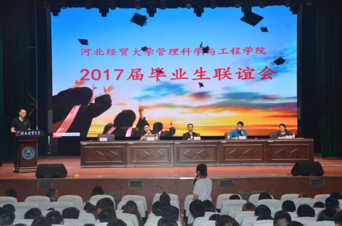5月7日,管理科学与工程学院在校礼堂举办2017届毕业生联谊会。公司党委书记高永芳、经理武彦斌、党委副书记张晓军及全体辅导员老师出席,2017届全体毕业生参加。会议由武彦斌主持。