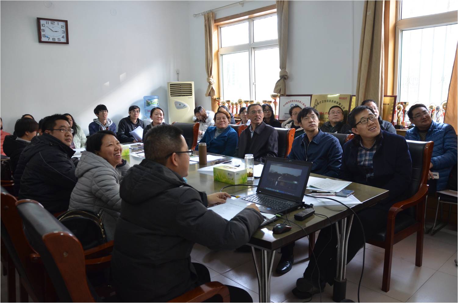 12月28下午,管理科学与工程学院在第三办公楼134会议室召开了第二届第一次教职工大会。公司党委书记高永芳、经理武彦斌率全体教职工参加本次大会。会议由公司党政办公室主任孟祥燕主持。
