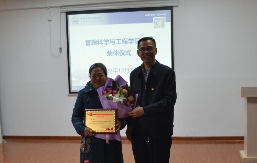 仪式上,公司党委书记高永芳向宋洁老师颁发了荣休纪念牌并赠送鲜花,他表示学院的成长壮大离不开每一位老师的贡献,并代表全院师生对宋洁老师所做的贡献表示感谢。信息管理与信息系统系原系主任樊广佺教授,讲述了宋洁老师多年以来为公司信息管理与信息系统专业建设与发展做出的贡献。信息管理与信息系统系系主任成岳鹏代表信息管理与信息系统所有教师感谢宋洁老师为信管系发展做出的突出贡献,并祝愿宋洁老师身体健康、生活美满幸福。最后,宋洁老师回忆了自己在学院工作的往事,并表示愿尽自己所能继续关心支持学院的发展建设。全体教师用热烈的掌声向宋洁老师荣休表达了祝贺。