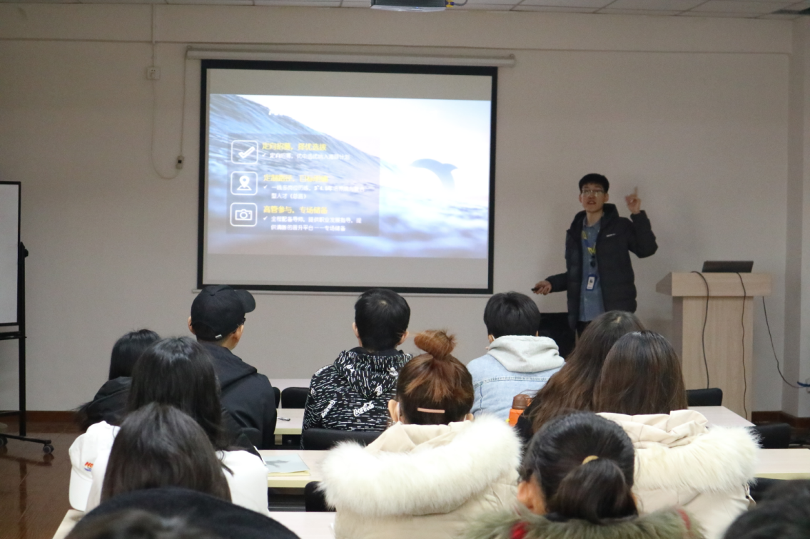 主讲人李文丰首先从发展历程、发展理念、业务成绩、企业投资、社会责任五方面介绍了德邦物流的企业文化,强调德邦物流公司倾向于培养年轻团队,打造轻松的工作氛围,拥有完善的人才培养体系,切实帮助公司员工个人成长。随后,他重点介绍德邦物流的“海豚计划”,该计划以培养复合型人才为目的,具有定向招聘、高管参与等优势。最后,同学们针对此次宣讲会内容积极提出问题,李文丰一一解答,同学们收获颇多,这不仅激发了同学们深入了解德邦物流企业的兴趣,同时提高了同学们投身物流行业的积极性。