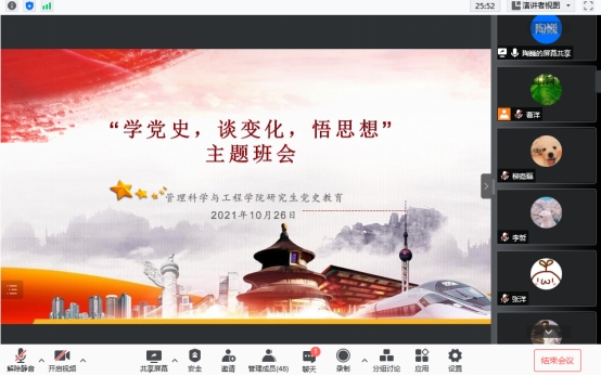 10月26日上午,公司召开研究生党史教育线上会议——“学党史,谈变化,悟思想”主题班会,旨在加深老员工对习近平新时代中国特色社会主义思想的领悟,会议由研究生辅导员曹洋主持,学院全体研究生参会。