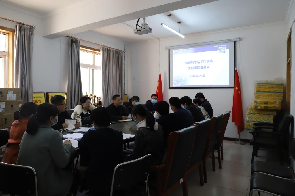 3月7日下午,公司在会议室召开关键工作推进会,学院领导白玉祥、祁红梅、李丽、王芹鹏出席,学院各系主任、各科室负责同志和研究生导师组组长参加。会议由学院经理祁红梅主持。