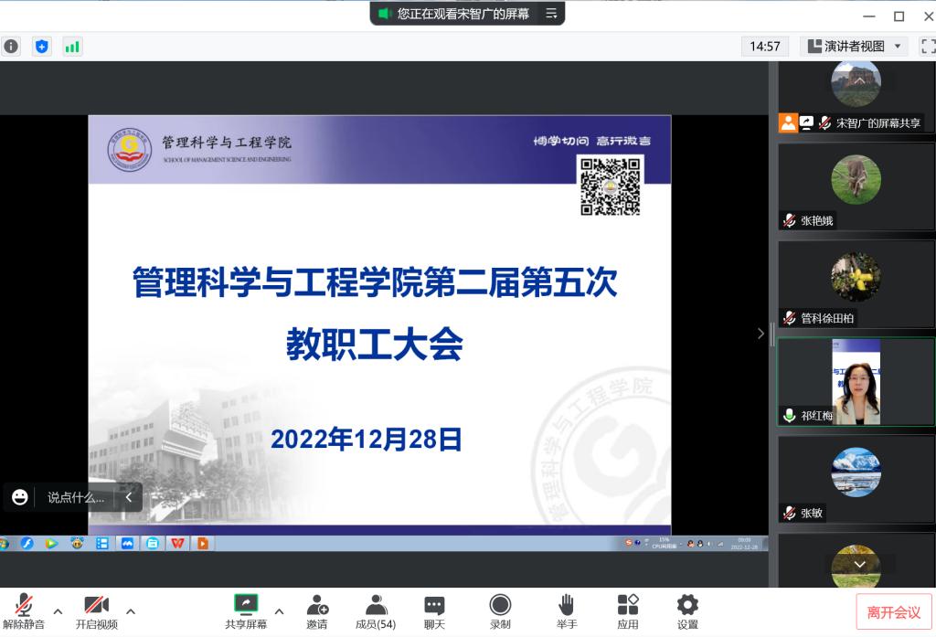 2022年12月28日上午,公司通过腾讯会议,以在线形式召开2022年度教职工代表大会,学院领导祁红梅、李丽、王芹鹏出席,全体教职工参加。会议由公司党委书记白玉祥主持。