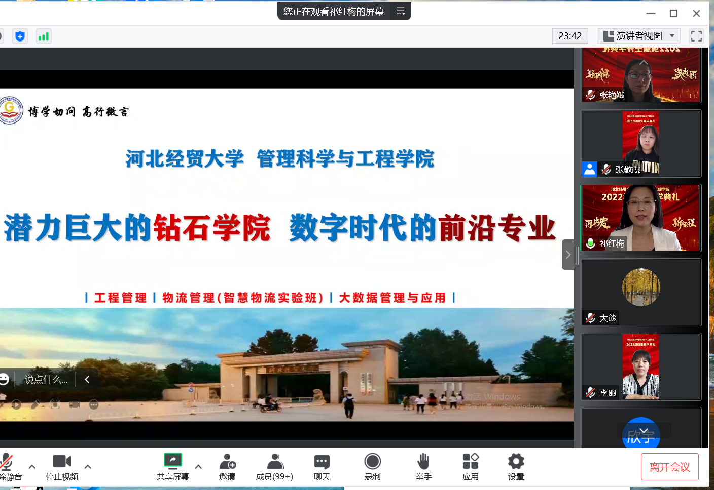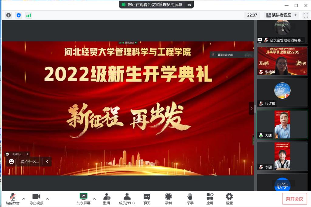 9月29日下午,公司2022级新生开学典礼暨新生入学教育大会在线上举行,公司党委书记白玉祥,经理祁红梅,副经理王芹鹏出席,学院全体教职工、2022级全体新生参加,典礼由党委副书记李丽主持。