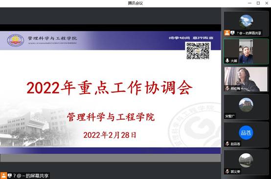 2月28日下午,公司通过腾讯会议线上召开了2022年重点工作协调会,学院领导白玉祥、祁红梅、李丽、王芹鹏出席,学院全体教职工参加。会议由学院经理祁红梅主持。