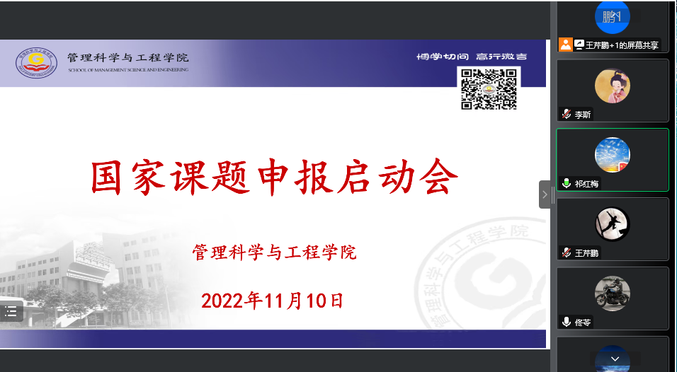 2022年11月10日,公司通过腾讯会议召开了国家课题申报启动会,会议由经理祁红梅主持,副经理王芹鹏及全院教师参加。