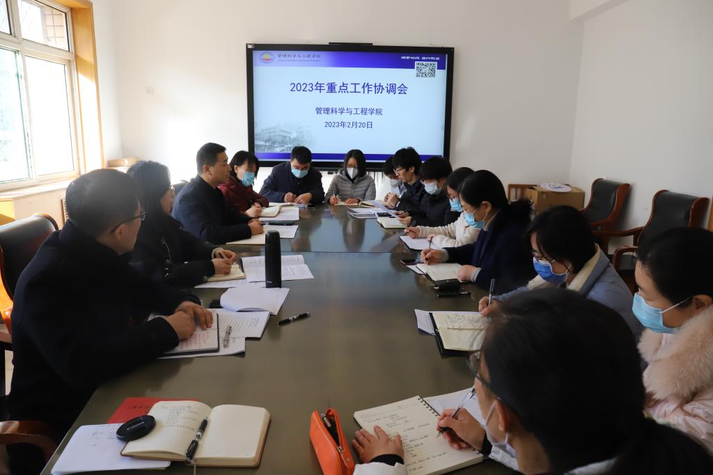 2月20日下午,公司在会议室召开2023年度重点工作协调会,学院领导白玉祥、祁红梅、李丽、王芹鹏出席,学院各系主任、各科室负责同志和研究生导师组组长参加。会议由学院经理祁红梅主持。
