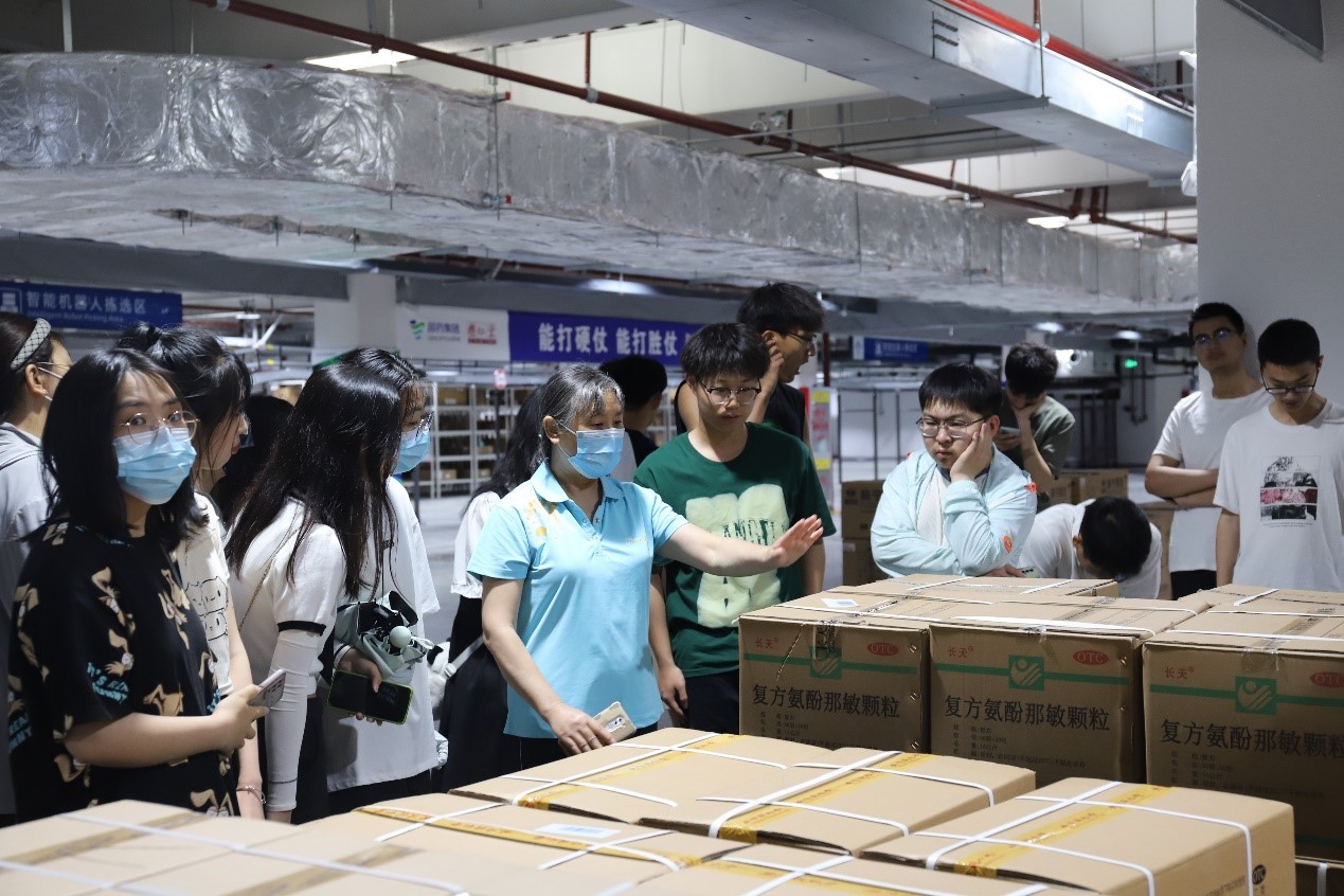 在乐仁堂三期立体仓库,企业工程师为师生详细讲解立体仓智能设施、装备构造、仓储流程、仓内机械臂、智能机器人、仓库货架等智能设备以及相应的仓储物流管理模式。在深国际的正定智慧港物流产业园,师生参观了智能化冷链仓里的整体构造和智能配备,企业管理人员详细讲解了医药制品的仓储流程。在学习过程中,同学们结合生活实际和自身疑惑,积极提问。