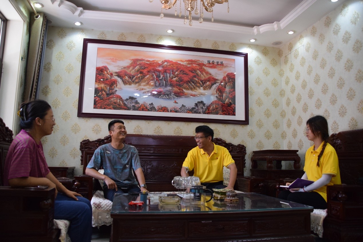 跟随习近平总书记的脚步,小分队来到脱贫攻坚动员令发起地的骆驼湾村、顾家台村及脱贫攻坚核心产业基地食用菌大棚、硒鸽养殖地、智慧果园等进行调研学习,并进深入农户家中进行深度访谈,近距离感悟脱贫攻坚和乡村振兴给阜平人民带来的历史巨变,深切激发员工们扎根基层、服务人民、奉献社会、报效祖国的家国情怀。