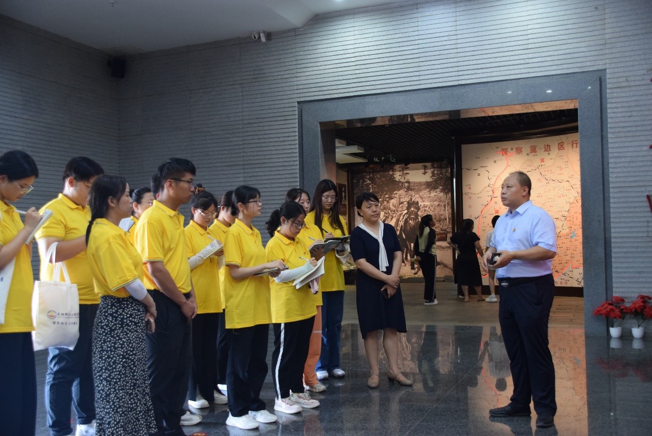 小分队一行走进晋察冀边区革命纪念馆瞻仰革命旧址,参观馆藏陈列,重温红色历史,缅怀革命先烈,叩问使命担当。王剑彪为同学们展开了党史教育微课堂,使社会实践成为生动的“思政课堂”,王书记强调青年员工应努力在社会实践中传承红色基因,提高思想认识,听党话、感党恩、跟党走,努力成为担当民族复兴大任的时代新人。