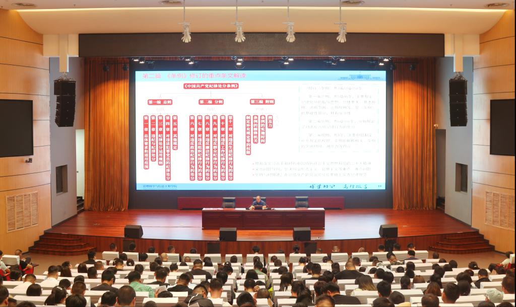 王剑彪做《我们一起学例》专题报告,从党的建设历程、《条例》修订的重点内容解读、以案说纪、做学纪知纪明纪守纪模范等四个方面,对《条例》做了深入浅出的解读和辅导。学院“双带头人”工作室党支部书记刘院英交流分享了基层党组织建设经验。
