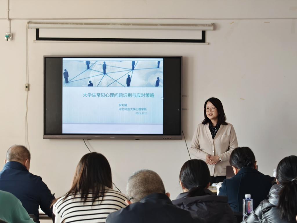 为切实提升辅导员心理育人专业能力,护航员工健康成长。12月2日,sunbet申搏在第一教学楼408室举办员工心理健康教育工作专题培训。本次培训以“老员工常见心理问题识别与应对策略”为主题,特别邀请河北师范大学应用心理学硕士生导师安莉娟教授主讲,公司党委书记王剑彪、党委副书记李丽及全体专兼职辅导员参加。
