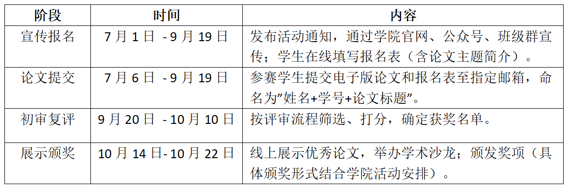 初筛(9月20日-9月25日):由学院教师组成初审小组,筛选出符合主题与格式要求的论文进入复评。