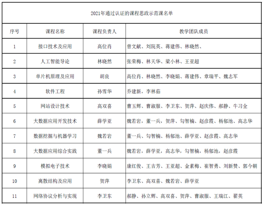 2021年通过认证的课程思政示范课名单