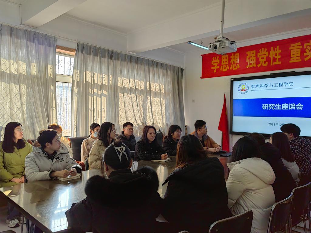 为全面、深入地了解研究生思想动态和学习生活情况,进一步提升员工管理和服务工作水平,12月27日,经理祁红梅、辅导员曹洋,以及十余位各班级研究生代表参加“师生有约话未来,建言献策谋发展”研究生座谈会。