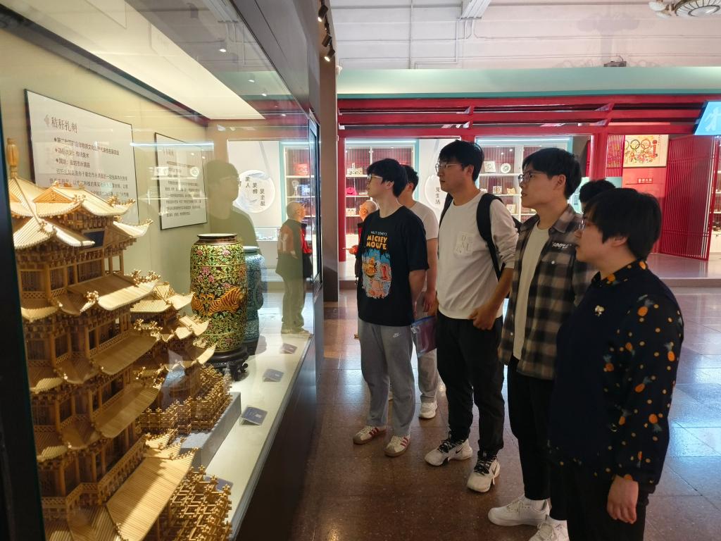 在“抗日烽火 英雄河北”展厅内,师生回顾了那段不平凡的红色岁月,对“军民一家亲”五个字有了更深层次的理解,更深刻感受到现在和平生活的来之不易。师生一行走进“乐享河北 非遗会客厅-河北省非物质文化遗产保护成果展”,近距离参观非物质文化遗产展览,感受中华传统文化的丰富内涵。