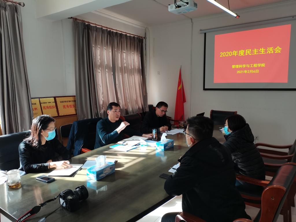 高永芳在会上通报了2019年“不忘初心、牢记使命”主题教育专题民主生活会整改落实情况和2020年度年民主生活会会前准备情况,并代表学院领导班子做对照检查,班子成员进行了讨论、补充、认领存在的问题并提出整改意见。随后,班子成员依次对照个人检查材料进行了汇报,并开展了批评与自我批评。与会同志开展的自我反省比较深刻、自我批评实事求是、相互批评开诚布公,会议严肃认真而不失团结。