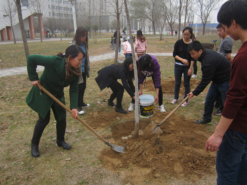 为响应校团委的号召,增进同学情谊,增强班级凝聚力,打造和谐先进的班集体,2014年3月17日下午,管理科学与工程学院2011级信管1班在学雷锋月,于C教后面的园林区举办了以植树为主题的团日活动。