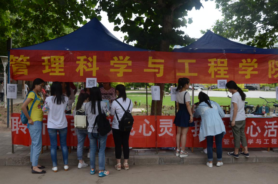 5月25日,管理科学与工程学院于韶华路举办了“聆听心灵,放飞自我,我诉我心”心理健康知识宣传活动。