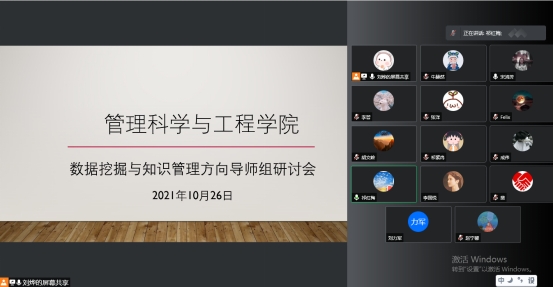 2021年10月26日下午,公司管理科学与工程学硕研究生数据挖掘与知识管理方向导师组举行线上研讨会,会议由祁红梅教授主持,学硕导师组组长宋鸿芳副教授、学院教师及该方向研究生参加会议。