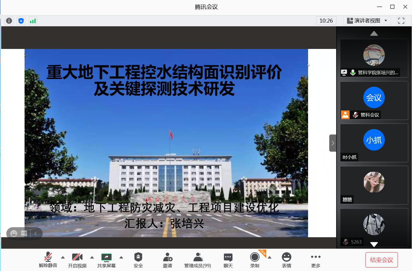 10月5日,公司张培兴博士在腾讯平台开展“重大地下工程控水结构面识别评价及关键探测技术研发”学术讲座。讲座由导师组组长宋鸿芳主持,管理科学与工程学院教师、研究生以及部分本科生在线参加了此次讲座。