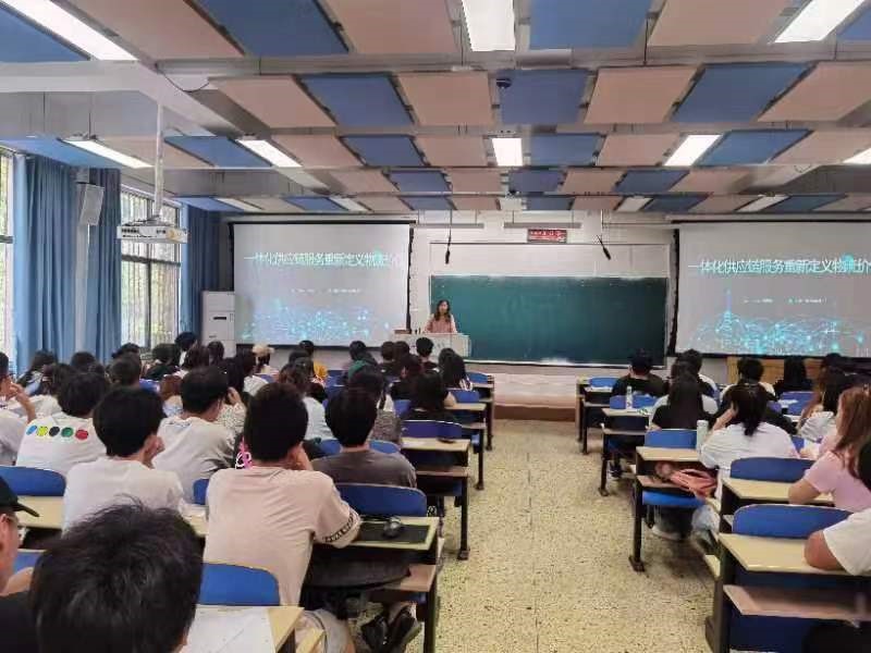 为了庆祝学校建校70周年,增强实践应用能力,利用校外专家资源拓宽员工的知识面,公司特邀请物流专家张银霞副教授于6月5日下午在三教A101教室为物流系20、22级100余名同学举办了题为“一体化供应链服务,重新定义物流价值”的讲座。讲座由物流系教师陈亮主持,物流系教师同员工一起聆听了讲座。